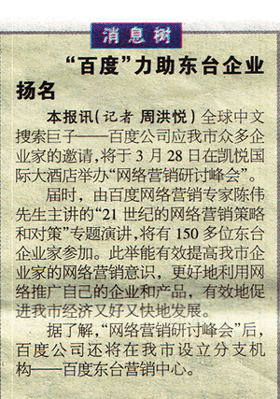 東臺(tái)日?qǐng)?bào):百度力助東臺(tái)企業(yè)揚(yáng)名!