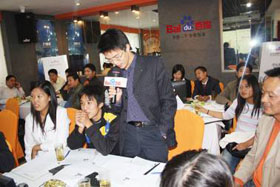 秋高氣爽,舒適宜人。2008年10月24號下午,“營銷加速度”——百度營銷專家培訓(xùn)會,在美麗的丹頂鶴之鄉(xiāng)鹽城拉開了帷幕。在思科百度商務(wù)會所里,客戶們齊聚一堂,氣氛甚是融洽。本次會議真可謂陣容強(qiáng)大,百度客服部經(jīng)理張鵬先生與百度渠道部經(jīng)理晟皞先生兩大經(jīng)理齊上陣,再加上思科資深網(wǎng)絡(luò)營銷專家、客服部經(jīng)理盧全女士精彩而實用的演講,現(xiàn)場客戶個個大飽耳福,獲益非淺。會議開場主持人帶領(lǐng)大家玩默契火拼游戲,破冰熱場,大家玩得不亦樂呼!短暫的游戲后,與會嘉賓都專心致志的聽著張鵬經(jīng)理、盧全經(jīng)理精彩的演講。在有獎問答環(huán)節(jié),客戶們更是奮勇?lián)尨穑颜麄€會議推向了高潮。