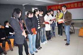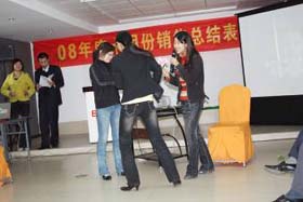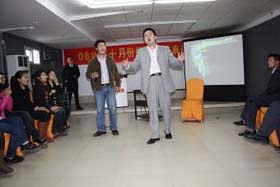 涼風(fēng)習(xí)習(xí),秋雨綿綿澆不滅我們涌動(dòng)的青春、火熱的激情。2008年11月8號(hào)下午,我司十月份銷售總結(jié)表彰大會(huì)順利拉開(kāi)了帷幕。百度渠道部經(jīng)理晟皞先生為此次會(huì)議作了一番別具風(fēng)格的致詞,與會(huì)人員無(wú)不熱情高漲。與其說(shuō)是會(huì)議不如說(shuō)是狂歡派對(duì),大家不由自主地敞開(kāi)心扉、釋放激情。