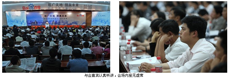 6月10日,陰雨綿綿?!盃I銷中國行”活動在鹽隆重拉開帷幕。此次活動旨在探討如何提升企業(yè)網(wǎng)絡(luò)營銷能力來促進(jìn)地方經(jīng)濟繁榮,受到政府、學(xué)術(shù)界、商界的高度重視。市經(jīng)信委主任羊維達(dá)、臺灣因特網(wǎng)營銷研究協(xié)會秘書長陳定震、百度公司服務(wù)管理部總監(jiān)任建斌、百度公司渠道部銷售總監(jiān)欒天、百度公司渠道部渠道經(jīng)理曹宇等35位嘉賓以及500多家鹽城市重量級企業(yè)家代表出席了活動,共同見證這一盛況!