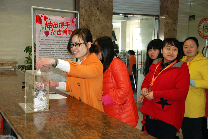 4月7日,在公司領導的關心和倡議下,鹽城思科全體員工發(fā)起了為陳煜同學愛心捐款的活動,大家都主動從自己的工資里拿出一百、五十、二十、十元……盡自己的微薄之力為陳煜同學獻上一份愛心,助其抗擊病魔,走出困境。
